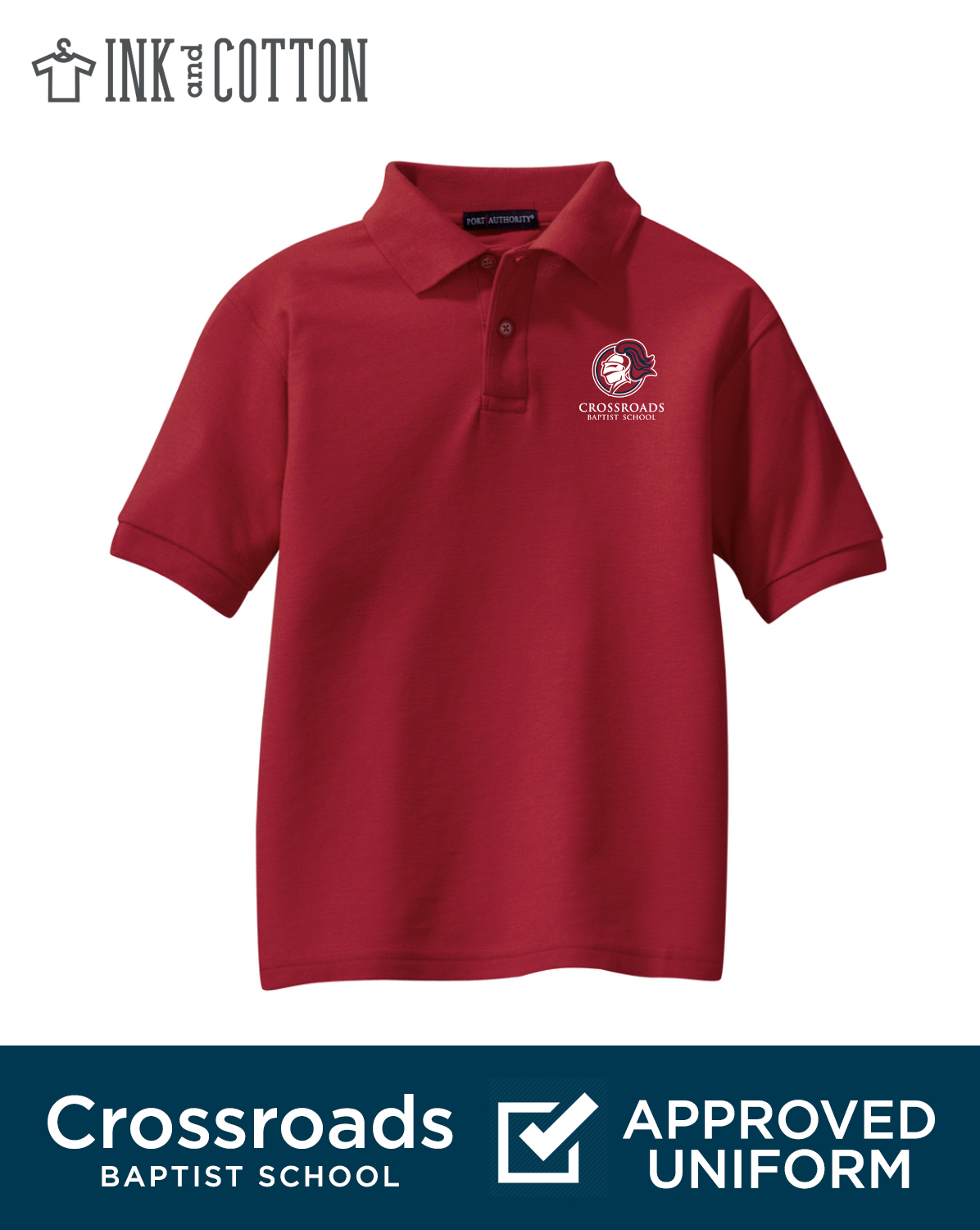 Price includes embroidery of Crossroads Baptist School Logo