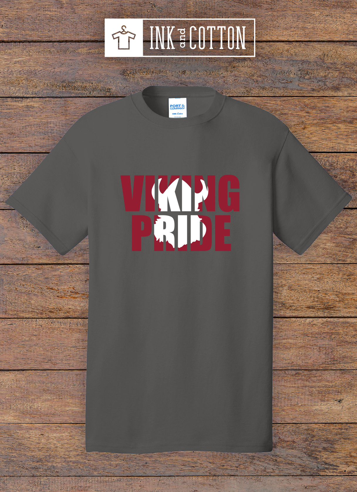 All shirts are Port & Company Core Cotton Tee. 100% Cotton in the color Charcoal.